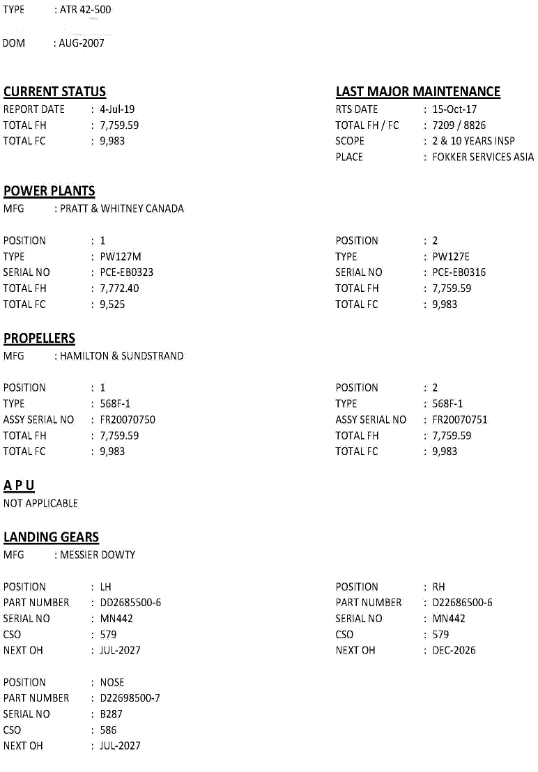 NB: Aircraft offered for sale subject to contract, prior sale, withdrawal from the market and information regarding any aircraft or helicopter and provided verbally or in written documentation and/or contained within this e-mail or associated paper-work should be taken as a guide only in determining the suitability, including that aircraft or helicopters specification and/or performance. We highly recommend that any buyer or lessee perform their own inspections and due diligence to verify any and all technical, performance and specification information contained therein including OEM claims.