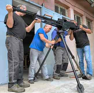 | The KPV-14.5 heavy machine gun (Krupnokaliberniy Pulemyot Vladimirova, in Russian as Крупнокалиберный Пулемёт Владимирова, or КПВ) is a Soviet designed 14.5x114mm-caliber heavy machine gun, which first entered service as an infantry weapon (designated PKP) in 1949. In the 1960s the infantry version was taken out of production because it was too big and heavy. It was later redesigned for anti-aircraft use, because it showed excellent results as an AA gun, with a range of 3,000 meters horizontally and 2,000 meters vertically against low flying planes. It was used in the ZPU series of anti-aircraft guns. Its size and power also made it a useful light anti-armour weapon on the BTR series of vehicles and the BRDM-2 scout car.
