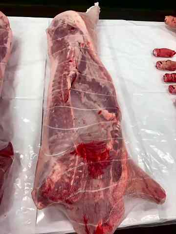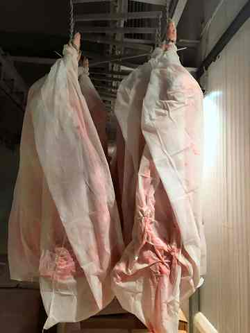Carcass in 2 halves or each halve cut in 3 pieces